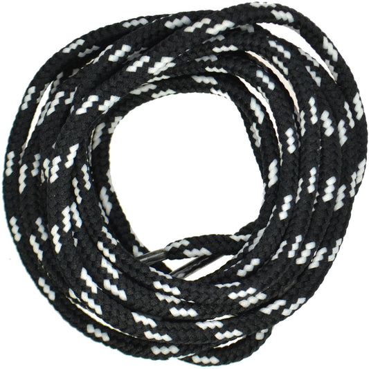 Black Shoe Laces with diagonal white flashes. Round profile. 4mm wide...