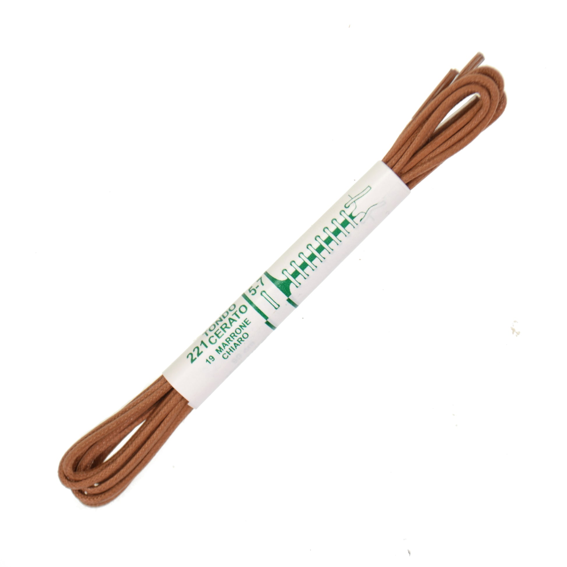 Top Dog waxed cotton Shoe Laces, a very thin tightly woven premium waxed cotton Shoe Laces. 2mm wide. Tan / Light Brown. 100% Cotton. Made in Italy. Per pair.