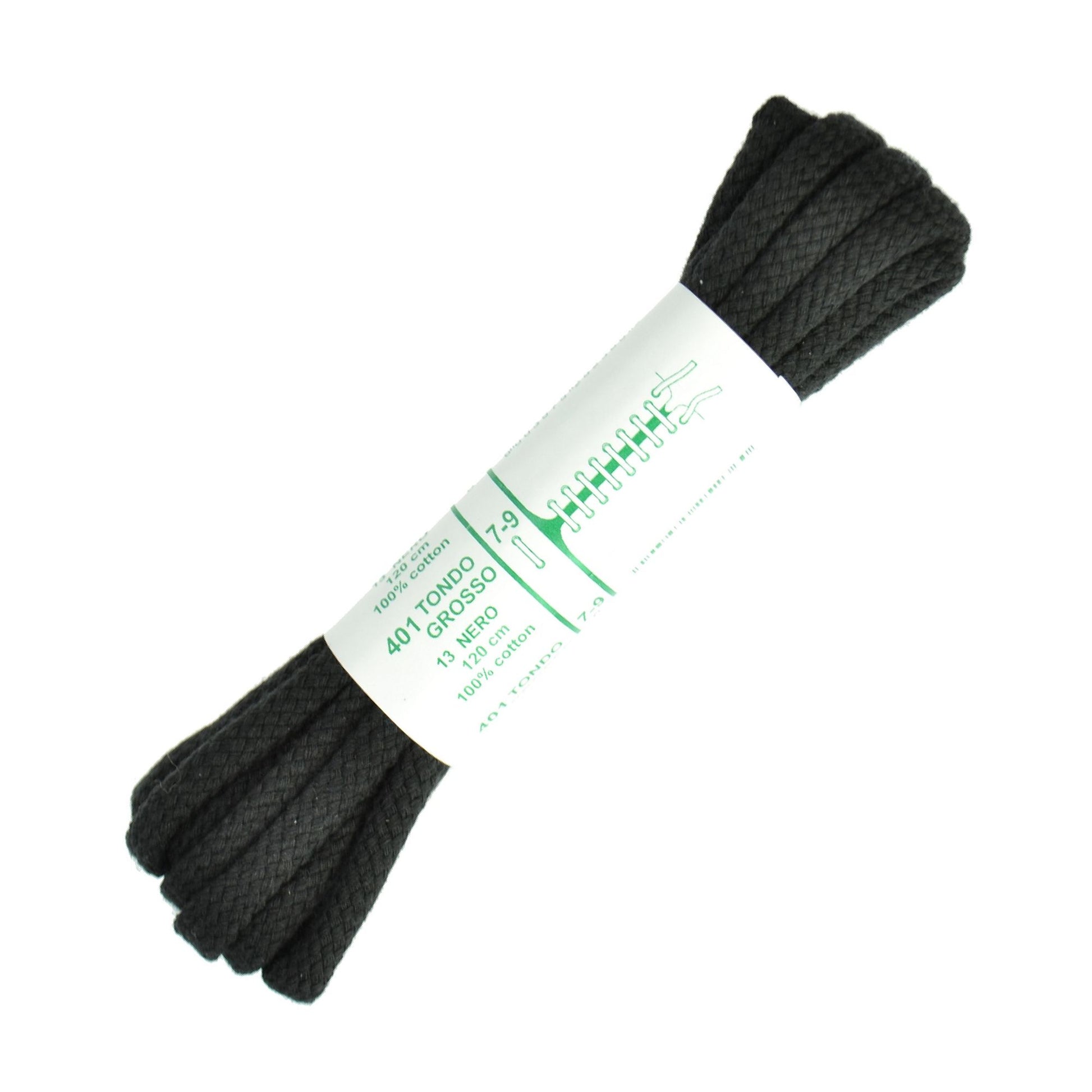 Top Dog cord cotton Shoe Laces, a tightly woven premium cord cotton Shoe Laces. 6mm wide. Colour: Black 100% Cotton. Made in Italy. Per pair.