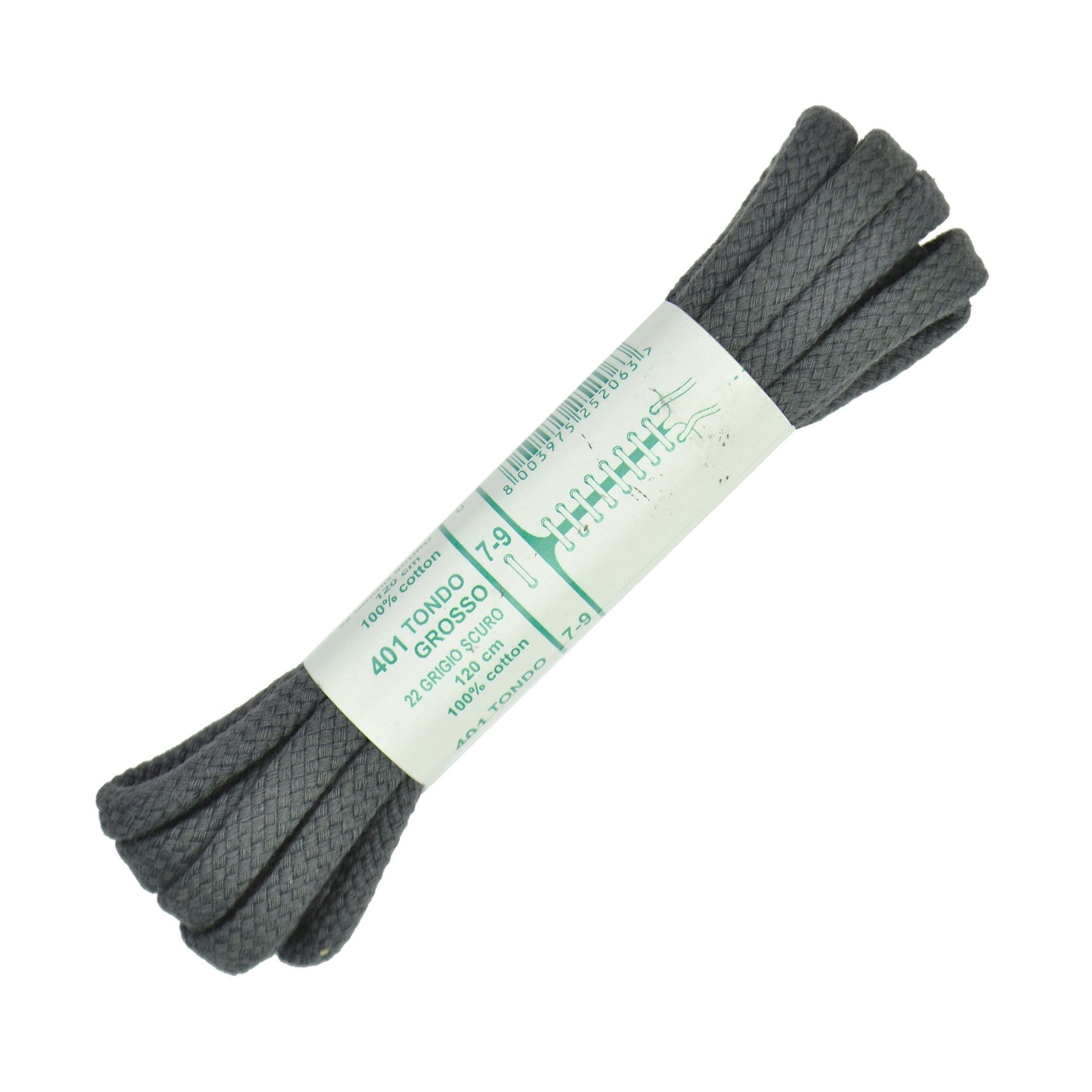 Top Dog cord cotton Shoe Laces, a tightly woven premium cord cotton Shoe Laces. 6mm wide. Colour: Dark Grey. 100% Cotton. Made in Italy. Per pair.