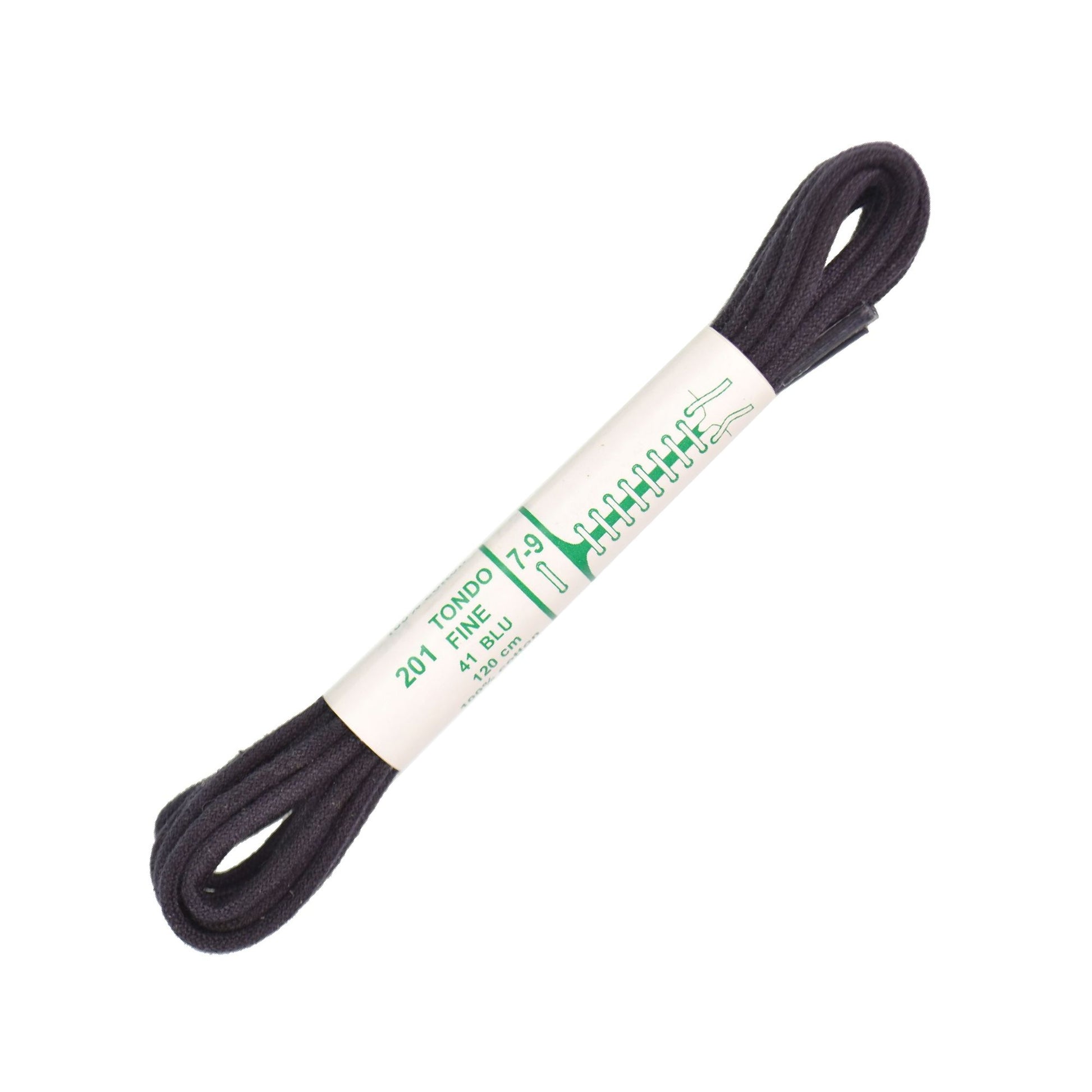 Top Dog cotton Shoe Laces, a round tightly woven premium cotton Shoe Laces. 2mm wide. Colour: Navy Blue. 100% Cotton. Made in Italy. Per pair.