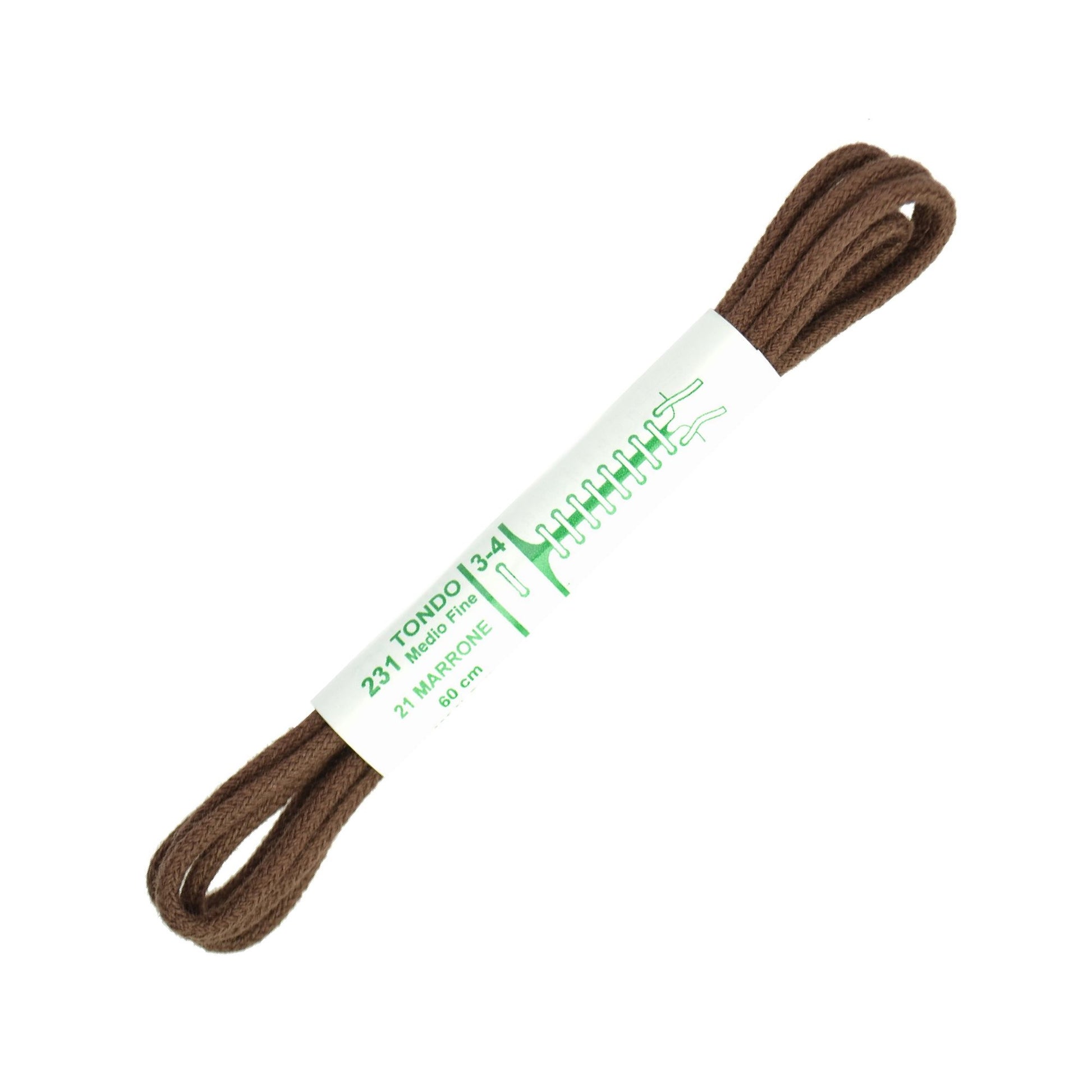 Top Dog cotton Shoe Laces, a round tightly woven premium cotton Shoe Laces. 2.5mm wide. Colour: Dark Brown. 100% Cotton. Made in Italy. Per pair.