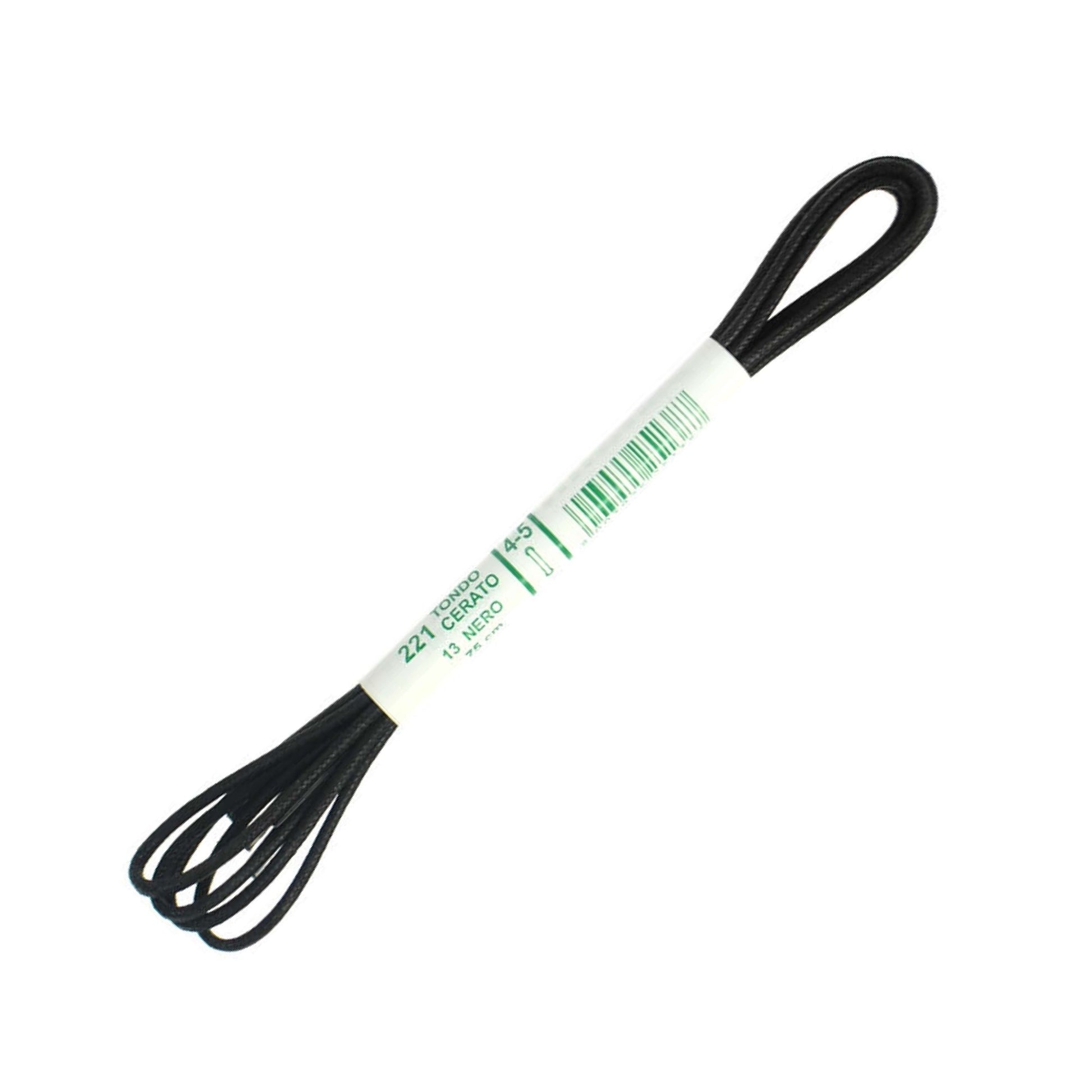 Top Dog waxed cotton Shoe Laces, a very thin tightly woven premium waxed cotton Shoe Laces. 2mm wide. Black100% Cotton. Made in Italy. Per pair.