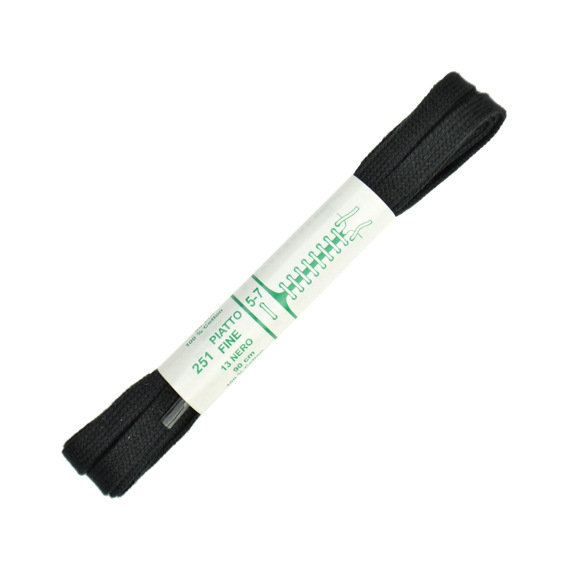 Top Dog cotton Shoe Laces, a flat tightly woven premium cotton Shoe Laces. 6mm wide. Colour: Black. 100% Cotton. Made in Italy. Per pair.