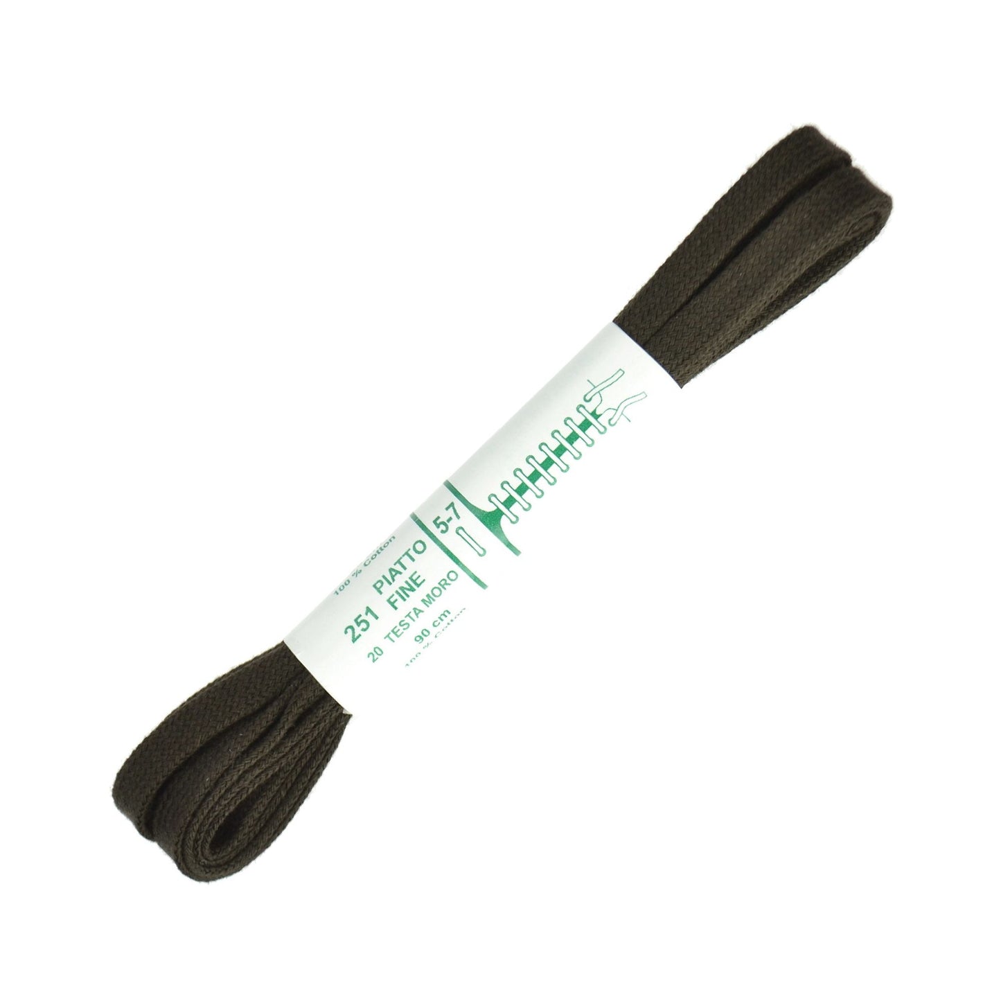 Top Dog cotton Shoe Laces, a flat tightly woven premium cotton Shoe Laces. 6mm wide. Dark Brown. 100% Cotton. Made in Italy. Per pair.