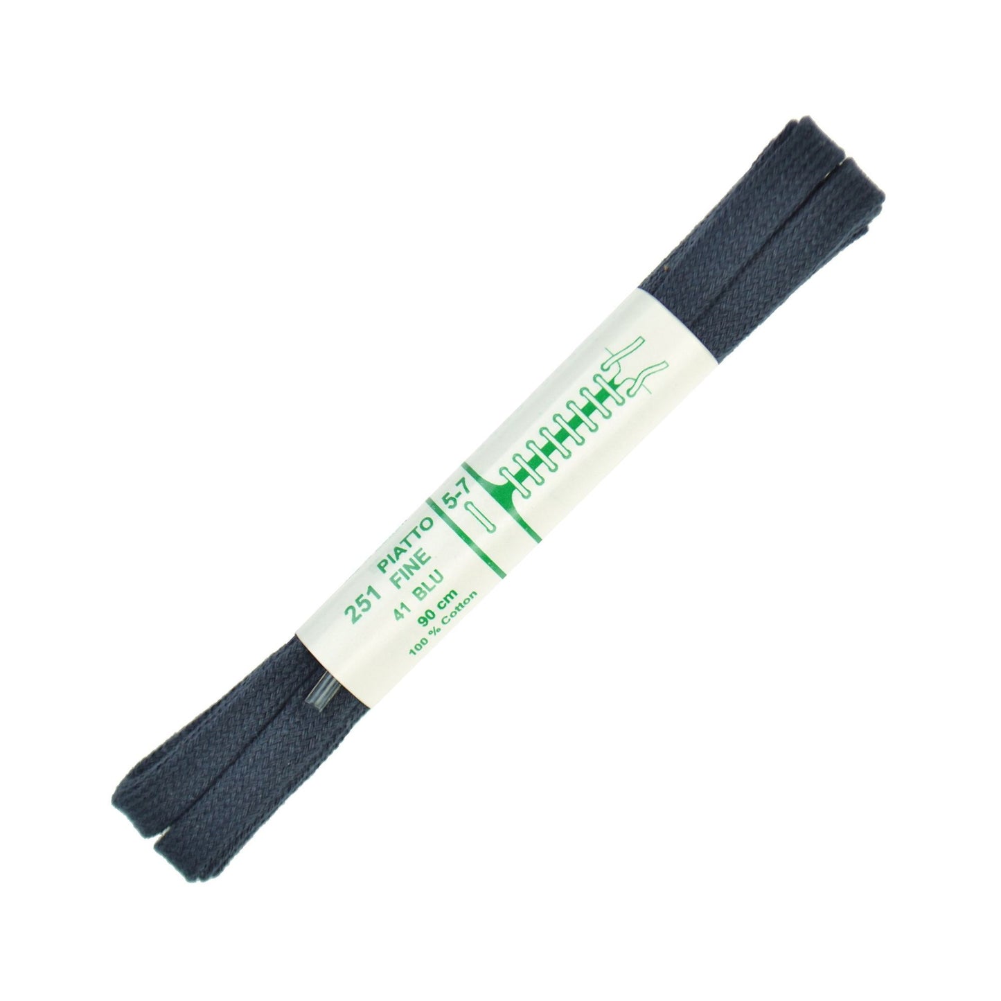 Top Dog cotton Shoe Laces, a flat tightly woven premium cotton Shoe Laces. 6mm wide. Colour: Navy Blue. 100% Cotton. Made in Italy. Per pair.