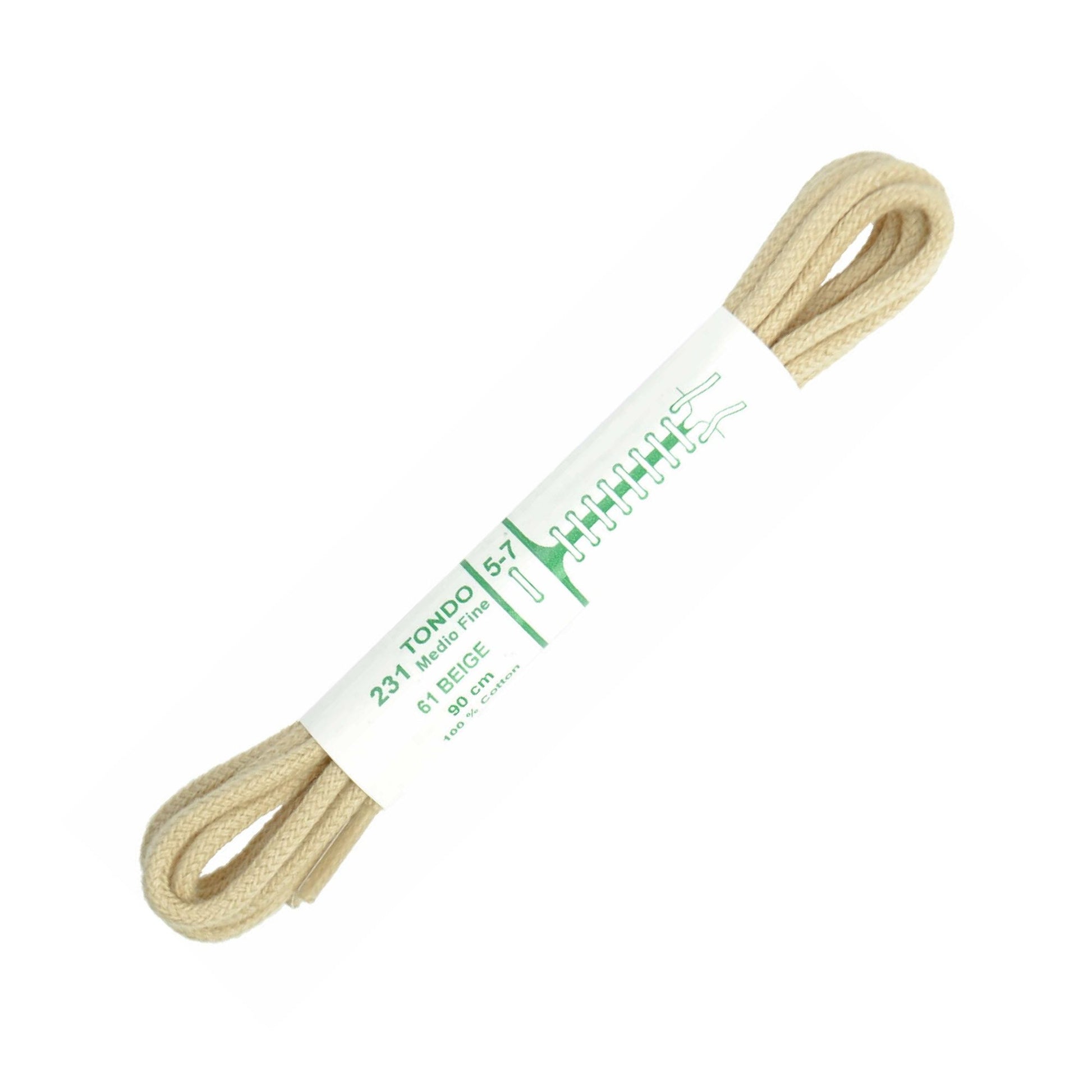 Top Dog cotton Shoe Laces, a round tightly woven premium cotton Shoe Laces. 2.5mm wide. Beige. 100% Cotton. Made in Italy. Per pair.