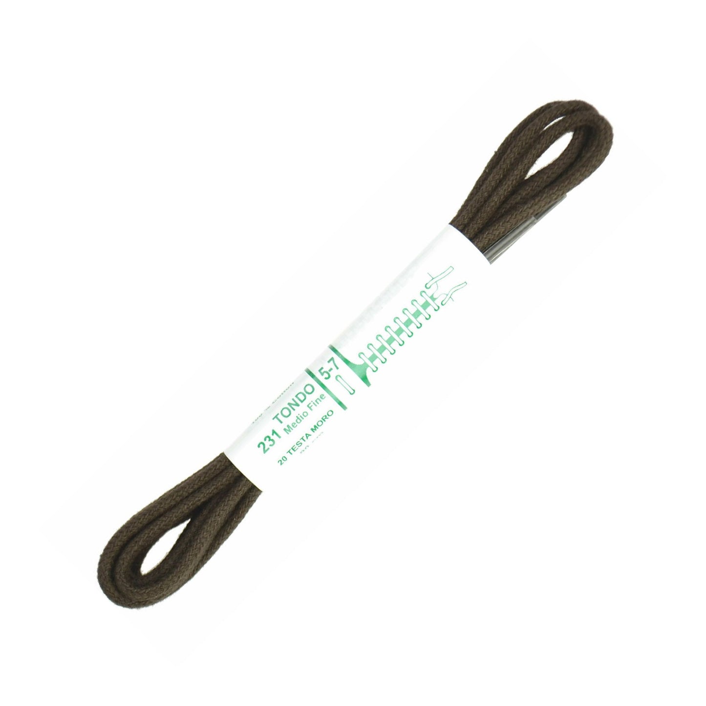 Top Dog cotton Shoe Laces, a round tightly woven premium cotton Shoe Laces. 2.5mm wide. Dark Brown. 100% Cotton. Made in Italy. Per pair.