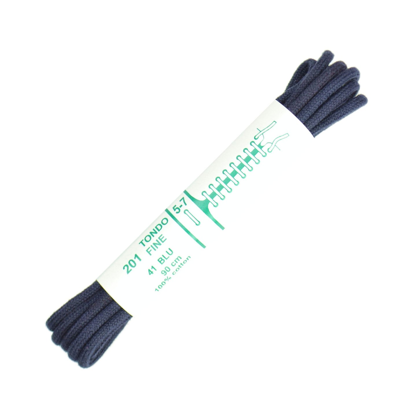 Top Dog cotton Shoe Laces, a round tightly woven premium cotton Shoe Laces. 2mm wide. Navy / Dark Blue. 100% Cotton. Made in Italy. Per pair.