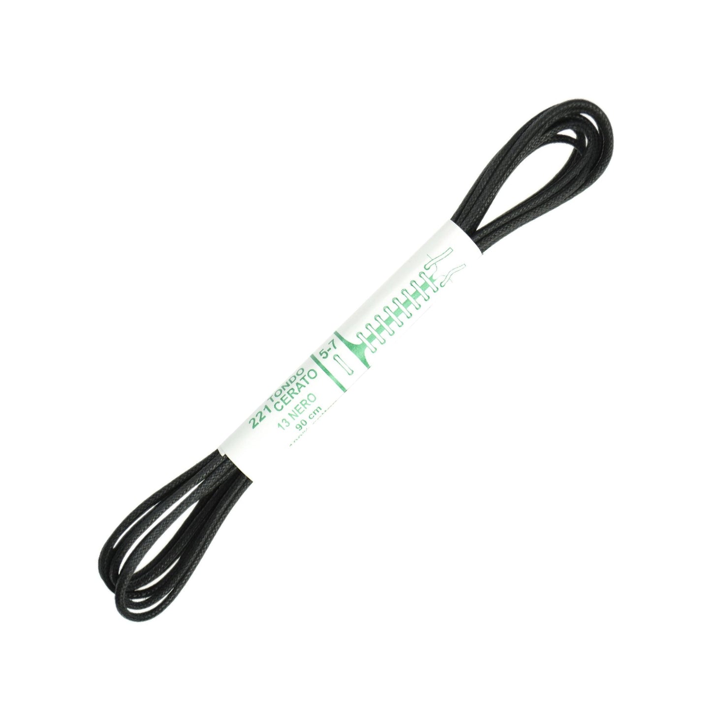 Top Dog waxed cotton Shoe Laces, a thin tightly woven premium waxed cotton Shoe Laces. 2mm wide. Black. 100% Cotton. Made in Italy. Per pair.