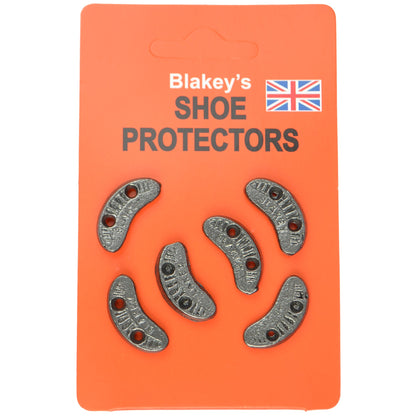 Blakey’s Shoe Protectors also known as Segs (sometimes, incorrectly, known as quarter tips). Made from cast metal. Traditional metal protectors that are made in England. Fitting Instructions Wet leather if fixing to a leather sole or heel. Place a shoe stud over the area to be protected. Tap home with sharp blows from a hammer.