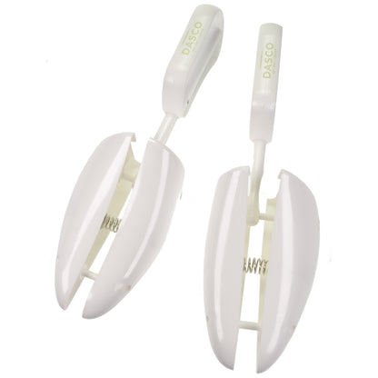Dasco Piccadilly shoe trees for men are a lightweight plastic shoe tree with split forepart. Designed to help keep shoes in excellent shape. Automatic length and width adjustment. Easy grip handle to aid shoe cleaning. Colour: White. Per Pair.