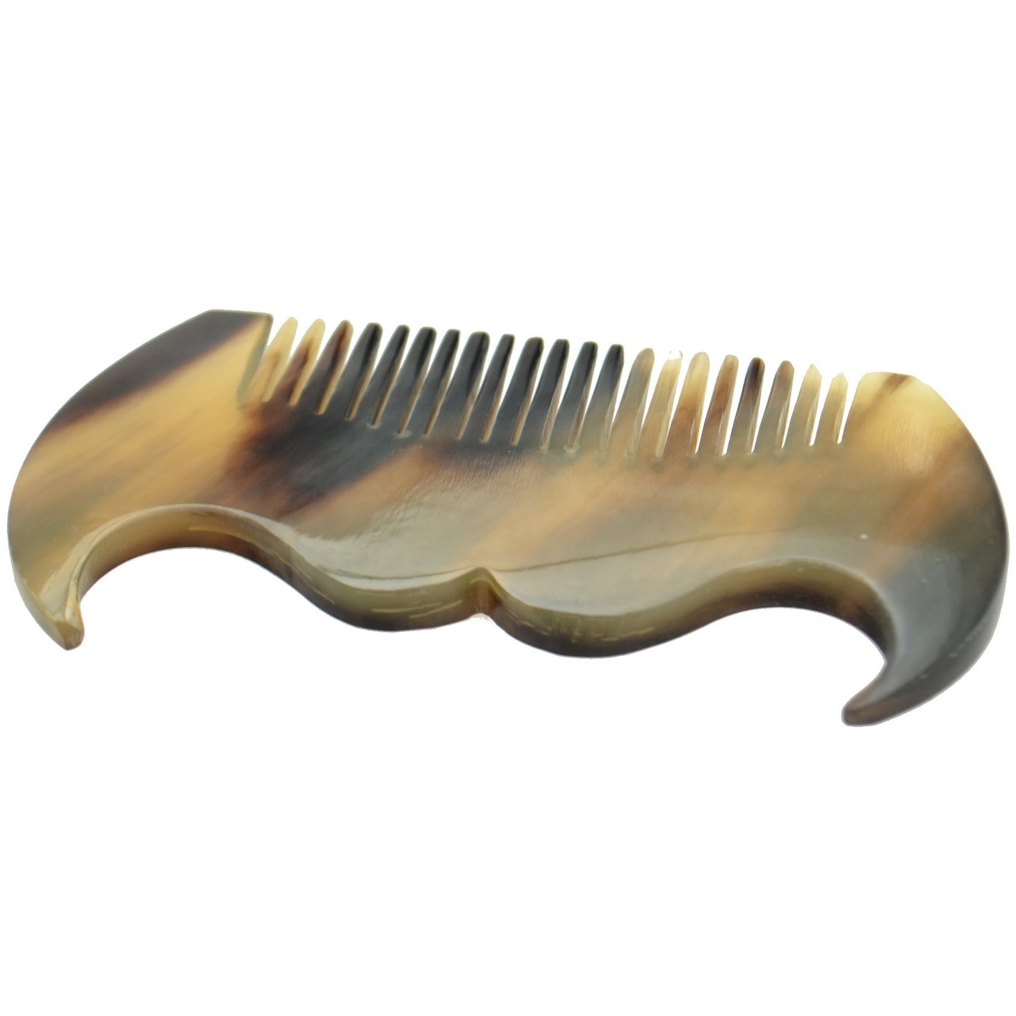 Hand crafted moustache comb made out of real horn with fine teeth in a presentation box.. Horn combs do not create static like plastic combs. Colours will vary as every horn from which the combs are made is different. 7cm long - fits perfectly into a pocket. Each.