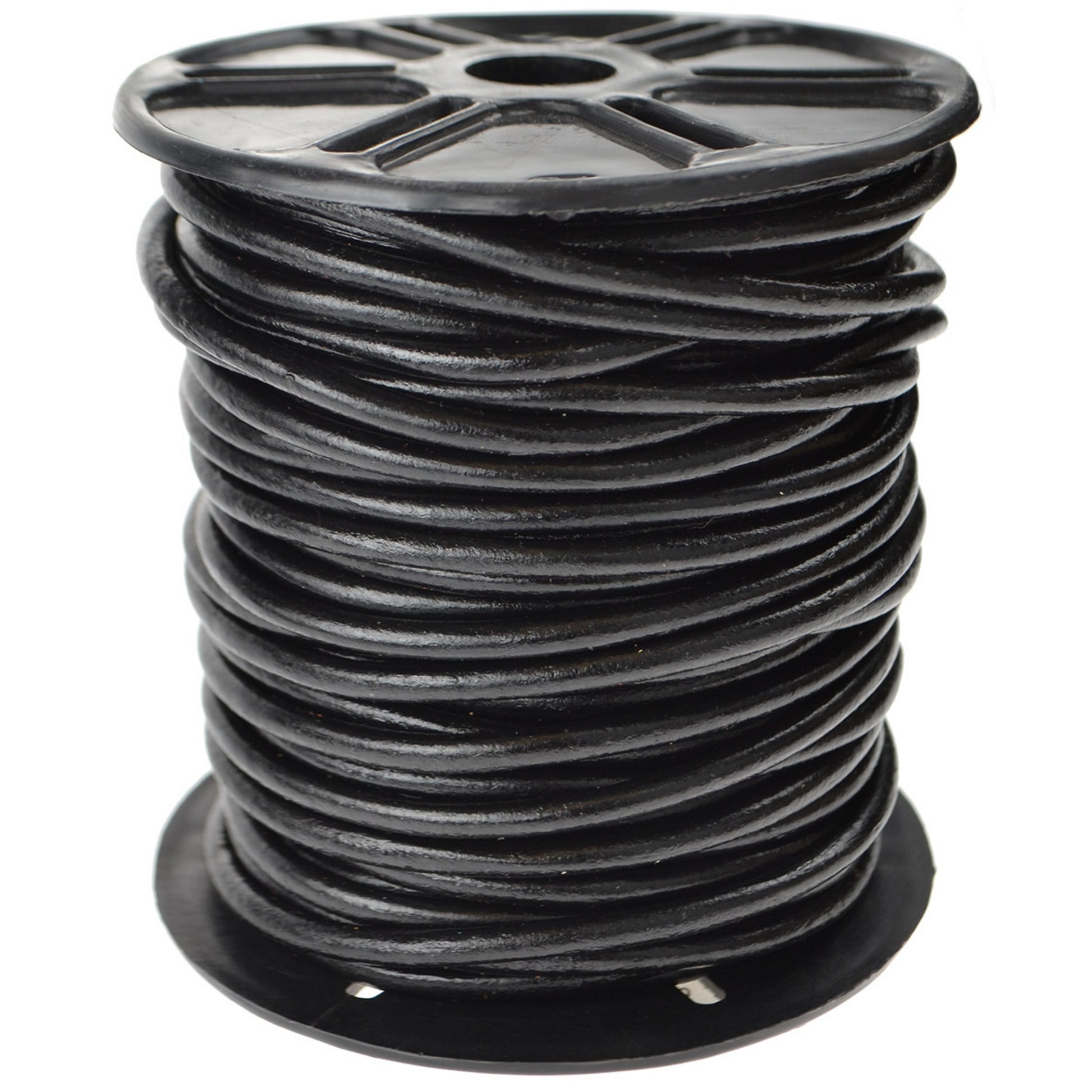 Rolled leather Shoe Laces round profile - 4mm diameter. Sold by the metre. Colour: Black with high gloss finish. Minimum order 2 metres. Note: Round leather Shoe Laces are a decorative Shoe Laces - they are not as strong as cut leather or man made Shoe Laces. Priced by the whole metre.