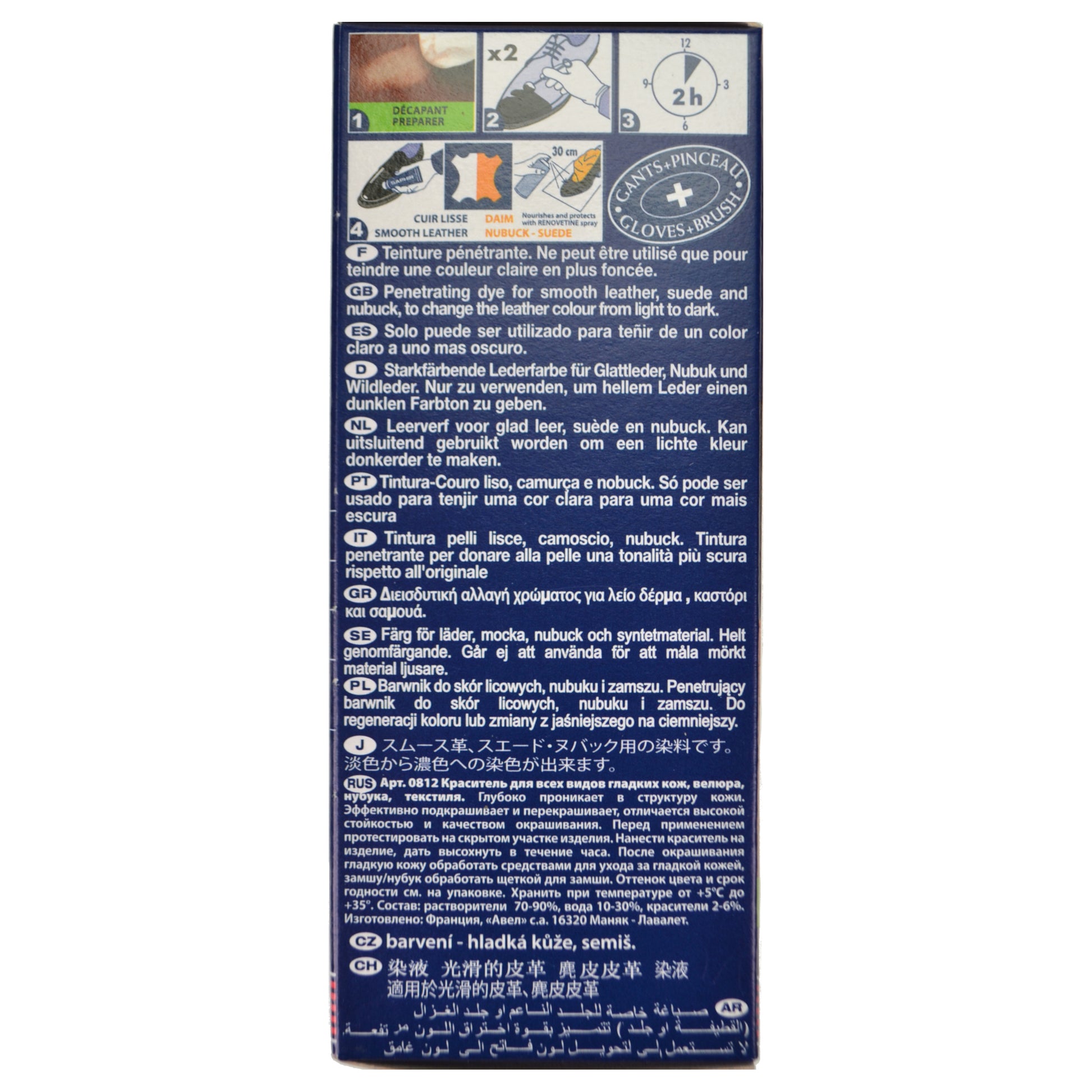 Saphir Teinture Francaise is a liquid dye for Smooth Leather, Suede/Nubuck and velvety leathers. A penetrating dye that can be used as base coat or to change the colour of leather from a light colour to a darker color or can be used to stregthen an existing colour. Comes with an applicator and a couple of protective gloves. Made in France. Colours: Black - 01; Brown - 04; Dark Brown - 05; Navy - 06.
