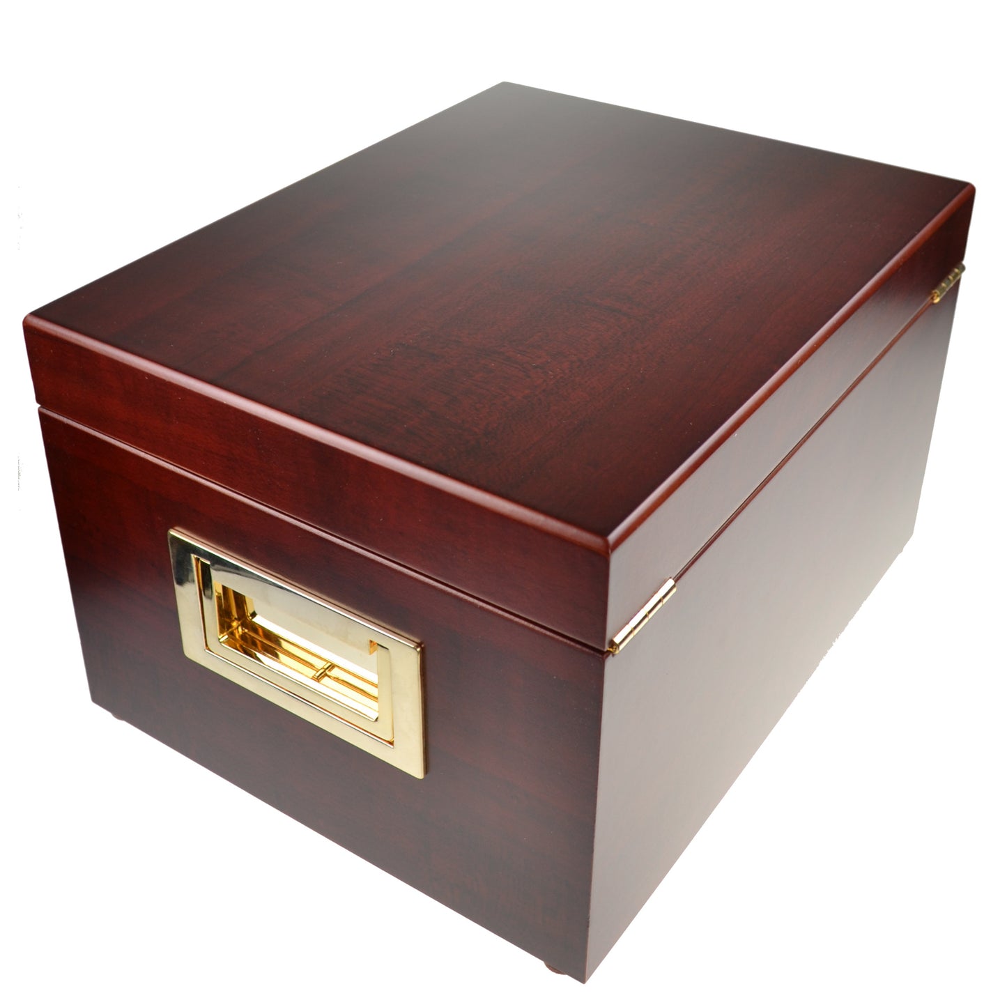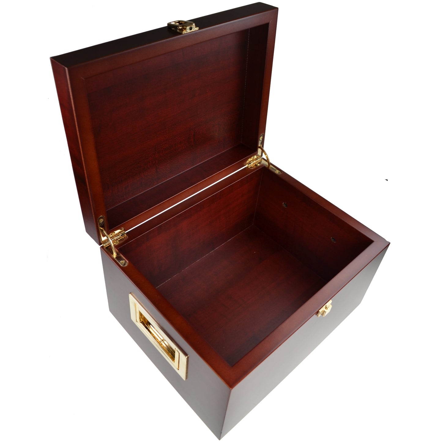 Cherry wood valet box with brass handles and shoe care contents. Made of wood veneer with brass plated fittings. Contents include: 2 x Large Horsehair Brushes 2 x Applicator Brushes Black cream polish Neutral cream polish Mid Brown cream polish Large polish cloth 75cm Thin round waxed black laces 75cm Thin round waxed brown laces Suede Brush Box exterior dimensions: 16.5cm x 27.5cm x 21.5cm (H x W x D)
